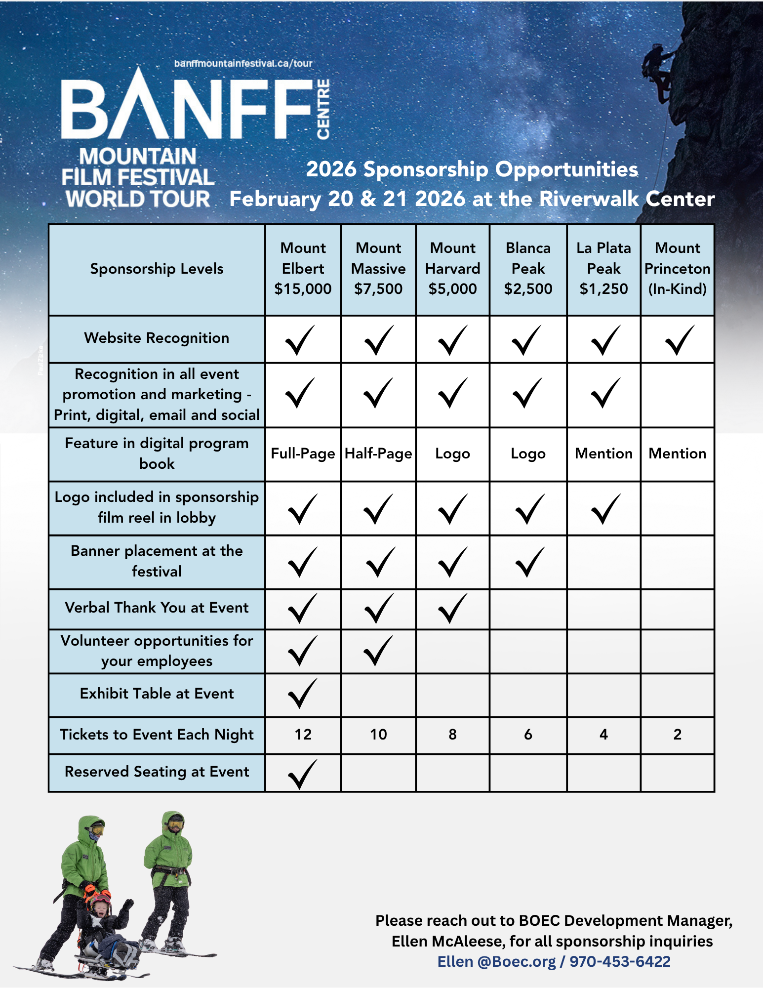 For information about sponsorship of BOEC events, contact Ellen McAleese at 970-453-6422 or [email protected]